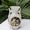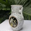 Unusual marble grey glaze urn vase with the traditional precious metals designs of a hummingbird and daffodils. Precious metals of silver and gold with 24kt gold rim on the circle and base. Art of Chokin are known of their workmanship and beautiful pieces from vases to plates. Stands 13cm tall. Free from any chips or damages. Packed with care for shipping.