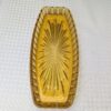 Australian Iconic Crown Crystal depression glassware, this amber long sandwich tray perfect condition, free from any chips. Traditional star burst base with decorative edging. The sandwich tray/plate measures 25.5cm (L)x 11cm (w) x 3cm (H). A great addition to your collection or simply display in any home decor. Packed with care for shipping. We are happy to combine postage, just drop us an email for correct postage order.