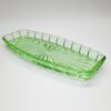 Australian CC Glass Company pair (2) of vintage star burst pattern base sandwich or cake plates/tray. Beautiful Australian green depression glass plates, as tradition back in the day with ACC homewares crystal dishes, these trays are no exception to the quality of Australian Glassware are here for the long haul, tough and durable dishes that grandma used to have in her kitchen. Each tray is 25.5cm in length, with the traditional starburst pattern on the base. Free from chips or damages. Packed with care for shipping.