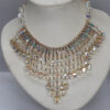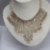 Absolutely stunning vintage Bohemian Bib style necklace with stunning borealis beads in gold tones with tear drops multifaceted beads with hook clasps. An absolute stunning piece, great statement piece for any special occasion, beautiful bridal piece with matching earrings. No markings to identify this piece but very much similar to Donald Simpson jewellery. Total length 41cm, bib length: 14cm, 8cm depth/bib. Comes with original gift box.