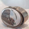 This Colosseo Pillbox is a beautiful antique piece, perfect for adding a touch of charm to your home. Crafted from high quality silver plate box with enamel top, it has endured the test of time and still looks as magnificent as ever. The intricate detailing of the Colosseo Pillbox is sure to be admired by all. The perfect addition to your living room, bedroom or hallway, this piece will make a statement in any collection. With its timeless style, the Colosseo Pillbox will be a lasting reminder of the beauty and charm of antique pieces. Add a timeless piece of history to your home today - the Colosseo Pillbox.