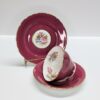 This stunning Delphine Trio bone china set with gold guild trim is a beautiful set for any collector. This trio has side plate, sauce and cup with floral design inside the teacup and on the centre of each plate with Delphine logo on each base. This trio is free from any damage, chips or cracks also free from any stains. Make this one yours today. Check our listing for other colours in this trio collection, we can also organize a package deal for the 6 sets, contact us today for further information. Packed with care for shipping