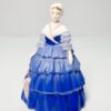 Quaint English Coalport figurine c7/1996 "Emma" N16 Hand painted and decorated by Martin Evans, bone china, Made in England. Elegant time period lady Emma in blue ruffled dress with soft pink umbrella, she stands 8cm tall. Emma would make a beautiful addition to any collector or lovely gift for somebody special. Packed with care for shipping.