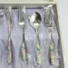 Are you looking for a quaint cake serving set for your next high tea? This Grosvenor Internationale 8 piece silver plate cake set, still in original packaging is just for you. Silver plated forks, spoon and server, with enamel design on the handle with a delicate pale pink flower. original box with pale purple silk lining, never been used. This cute little set would be the perfect accessory for any occasion or a gift for someone special. .... Packed with care for shipping.