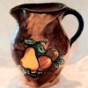 Add a touch of vintage charm to your home décor with this H&K Tunstall hand-painted small jug in "Luscious" design, made in England. This unique piece exudes timeless beauty and exquisite details that are sure to catch the eye of any collector. Signed and trademark stamp on base, there is a small chip on the rim of the base but it doesn't deflect the beauty overall, sits flat on table, no rocking.