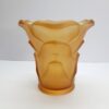 Large Australian Crown Crystal Glass Company frosted amber petal vase, stands 15.5cm tall. Pressed molded amber vase has deep cut petal shapes adorning this vase. A great vase to suit any decor or a collectors piece of Australian Crown Crystal. On the last photograph, showing you a production flaw, smooth and no rough edges in this flaw, inside the top rim, is a very small flea bite, free from any chips or cracks, packed with care for shipping.