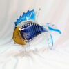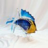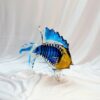Abstract Murano fish art glass sculpture, vibrant colours of blue and tan in clear glass with applied eyes, fins and fan tail. This sculpture is sure to create a great conversation piece in the home or office, it would suit any decor. Great gift idea for someone special. Stands 22cm tall x 28cm in length and very solid. Packed with care for shipping.