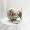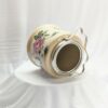 Late Victorian English Bristol Ware biscuit barrel with roses and butterfly decal, Medium cream background crackled glaze E.P.N.S stamped on the rim of the lid and handle, handle moves, not loose. A great addition to any kitchen decor. Barrel stands at 12.5cm tall Free from any damage, chips. Packed with care for shipping.