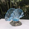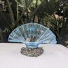 Italian made blue glass serviette holder sitting on a weighted silver metal base of sculptured fruit and leaves. A mid century modern with touch a vintage charm. Suitable for any styled decor with a functional use with napkins or displayed on its on. Stunning blue glass in a fan shape captures the light which adds beauty to its surroundings. Estimated era 1960s/70s. With original sticker "Lavarato A Mano" meaning in Italian "hand made" . Some minor wear and tear, light scratches but does not affect the overall appearance. Packed with care for shipping.