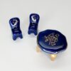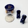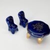 Cute miniature doll house porcelain furniture setting in Royal Blue with gold gild. Great little addition for any little girl or collector. A 50cent coin for sizing comparison of the furniture. Packed with care for shipping.