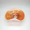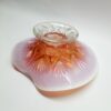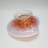 Looking for Opalescent Peach Ski Star Bowl? This unique ski star opalescent bowl is so vibrant in colour and the under side is just as spectacular with the milky white edging with fan shape impressions to marigold colour centre to the pedestal clear glass stand. This bowl has a curved lip/handle on one side. Star impressed designs from the centre to the middle. A unique design that would add glamour to any collectors showcase. You will not be disappointed with this one. Free from any chips or damage. Packed with care for shipping. Free gift wrapping available.