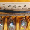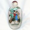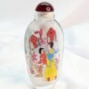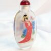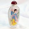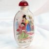 Beautiful set of 4 perfume/snuff bottles with original stoppers. Each bottle is carefully decorated from the inside, each side of the bottle has a different picture (8) pictures. In original box with slight wear on the lid, closure has toggle closure, label inside of the box "China Picture of Four Beauties". Three bottles stand on their own, one bottle, the base is slightly uneven, however it doesn't affect its overall appearance in such creative designs and art work. Box measures 21cm x10cm with yellow gold satin lining.
