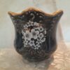 Enhance the beauty of your home décor with this lovely small pair of jardinières in black and grey tones, featuring gold edge rims, white flowers and orange leaves. This cute set would suit any décor with their colour combination