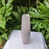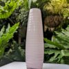 Tall pale pink and white cased glass vase with machine cut ribbing pattern. This vase has a slight pink ombre colouring from mid pink base to pale pink top. Stands 30cm tall. Subtle colour that will suit any decor, free from any chips or damage. Packed with care for shipping.