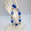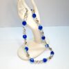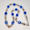 Vintage retro large blue peacock clear cut glass and crystal faceted beaded necklace with gold tone and diamante spacers on a wire strand, "S" hook clasps, 60cm in length. A beautiful necklace that would suit any dress attire, whether its day or evening. Packed in a gift box. Packed with care for shipping.