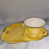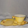 This Royal Winton "Petunia" Set is a rare find! With its delicate, hand-painted petunia flowers, this set is sure to be a conversation starter. Made of fine china, this set features a cup and saucer/plate, . The bright yellow beautiful contrast that will add class and sophistication to any table. This set is the perfect addition to any antique collection - a timeless piece that can be passed down for generations to come.