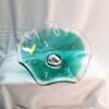 Stunning Soffiato A Bocca handmade Cristall glass bowl that could be used for treats, display or table decor. A nice smooth wave bowl with ombre green to clear rim with all original stickers. Creazon Artistiche, Made in Italy with quality glass. Diameter 19.5cm x 7cm height. Free from any chips or damages. Packed with care for shipping.