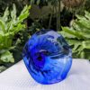 Deep transparent cobalt blue bowl on a pedestal footing is stunningly beautiful which would add class to any decor. A five fluted rim flared outwards to a deep centre, great for a small fruit bowl or simply display its natural beauty. This bowl stands 15cm tall with no chips or damage. Packed with care for shipping.