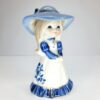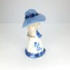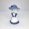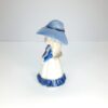 Cute as a button, this sweet little girl dressed in white and blue outfit, pale blue sun hat with dark blue ribbon trim, blonde hair with blue eyes, white pinafore style dress with blue floral design on the side, dark blue ruffle skirt hem with fine gold gild detail. This sweet girl would make a beautiful to any collection, dressing table figurine. In pristine condition. Great gift for someone special, mum, nana, granddaughter or just because she deserves a new home. Packed with care for shipping. Gift wrapping available for that someone special and we can ship direct to that person on your behalf.