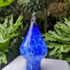Vintage art glass cobalt blue speckled hand blown genie teardrop light pendant with a clear glass twist stem at the bottom. The shade consists of 3 holes around the base for fitting. Could use be used as a sculpture centerpiece display in any styled decor. A unique conversation piece in any setting. Measures from top to bottom 35.5cm. Packed with extra care for shipping.