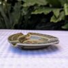 Irish porcelain clover/shamrock leaf border, triangular shaped ashtray with a galleon ship in the centre. Greyish/green glaze finish. This unique ashtray would be a great addition to any collection or mancave. Free from any chips or damage. Packed with care for shipping.