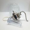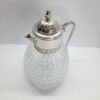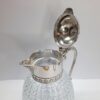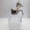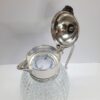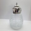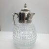 This absolute prestige vintage jug with hobnail style pressed glass with silver top and handle, would be the belle of the ball at any function, whether its a family get together, special occasion, B&B, wedding or to complete your décor with this statement piece of vintage glass jug, complete with ice cube cylinder to keep your choice of drink chilled. The silver plated lid and handle has beautiful detailed engraved patterns which is in pristine working condition with seal to secure the hinged lid. One of a kind instore, don't let this get away. A true statement piece that will suit your décor for any occasion. This jug holds around 3 litres, stands 33cms tall, 23cm at the widest width of the jug. Made in Italy. Free from any chips, or damages. Packed with absolute care for shipping. Please don't hesitate for further information if required.