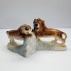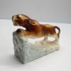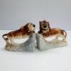 c1920-40s Vintage sand filled pottery Lion and Lioness bookends. Lion 15,5cm length, Lioness 15cm in length. Bases of are ground and leaves, with brown hues glaze. Great piece for the office or library. Great for fathers day gift. Free from any chips or damage. Origin unknown , no trademarks or markings. Packed with care for shipping.
