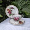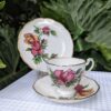 A lovely 1950s Roslyn fine bone china trio set with deep pink and yellow roses, slight waved rims on each piece, completed with gold gild paint. This Roslyn trio is "Shadow Rose" pattern, #R215. This is the perfect or simply add to your collection. This lovely set is ready for a new home. This trio set would be the perfect gift for someone special, Mother's Day is creeping up fast or perfect for a birthday gift, even permanent gift of roses. Free from any chips or damage. Packed with care for shipping. Free from chips or damage. Packed with care for shipping.