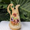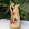 This stunning little Victorian Austrian porcelain transfer printed pink and purple roses with gold gild edging on the spout of the jug, the spout has an ornamental rim edging, tan/yellow background with scalloped edging base. A great little ewer jug that would look great on a dressing table , bathroom or in your collection cabinet. Stands 14cm tall. In excellent condition, free from any damages. Packed with care for shipping.