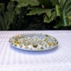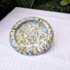 This unmarked ashtray with soft white background glaze, yellow roses and lilac roses, with 3 gold gilded curved holders. The ashtray measures 13cm in diameter x 1.5cm tall, free from any chips or damage. A great little piece that could be used as a trinket dish or add to any collection. Packed with care for shipping.